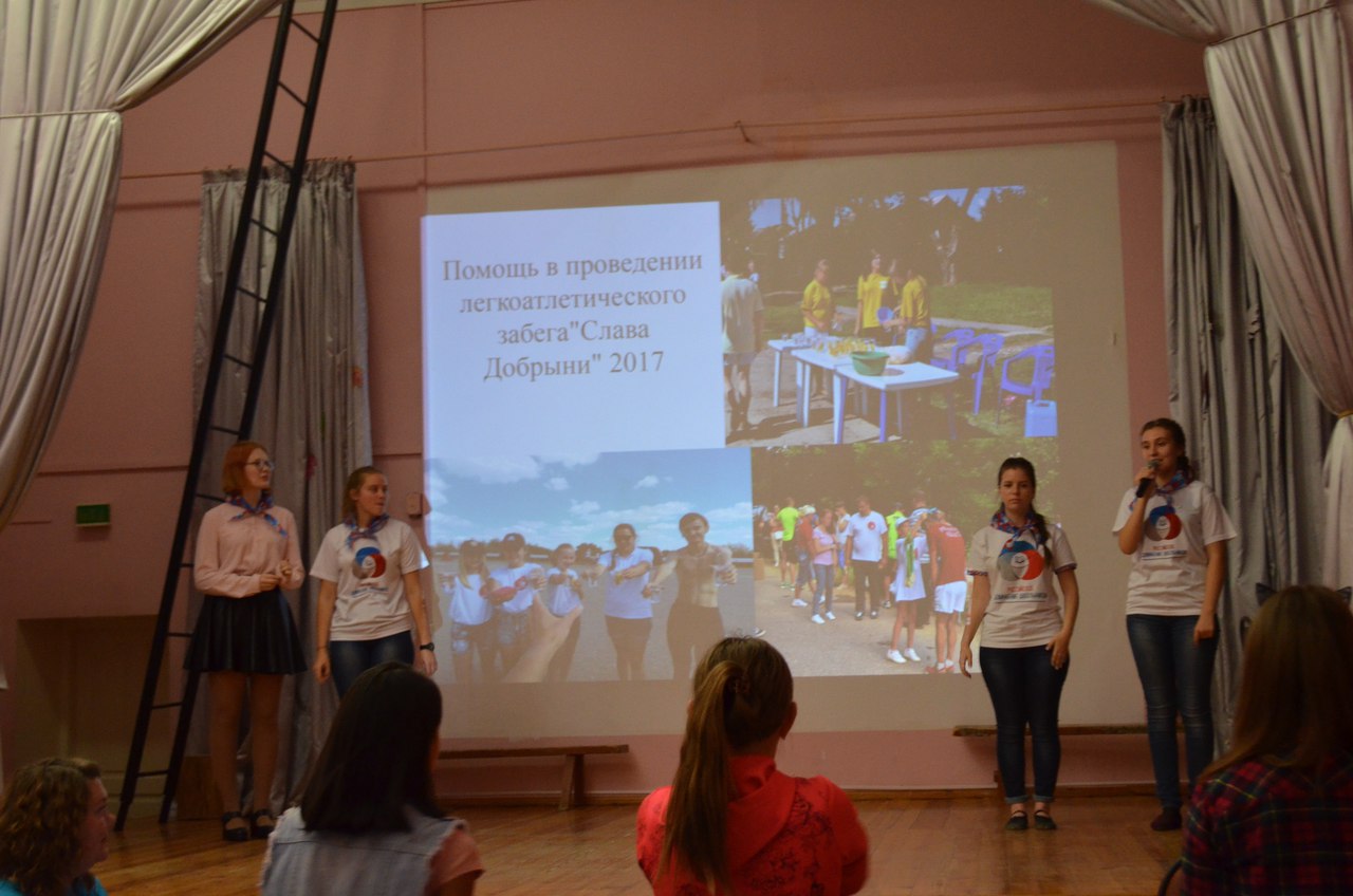 Активисты РДШ рассказали ребятам о «Российским движением школьников», познакомили со своей деятельностью в РДШ, а также станцевали танец на гимн РДШ. В завершении своего выступления активисты, показали театрализованное представление с весёлыми играми и танцами.