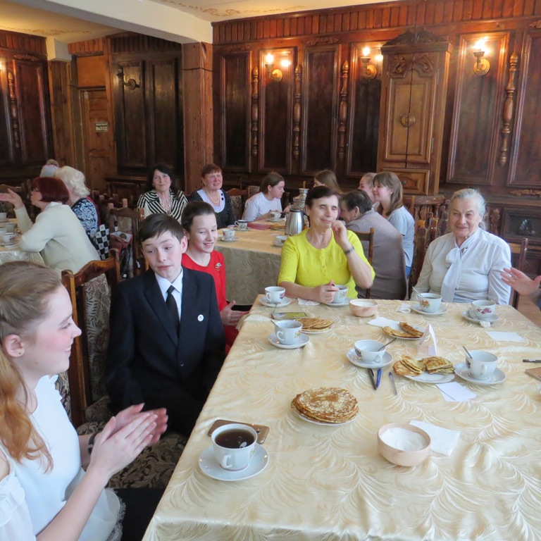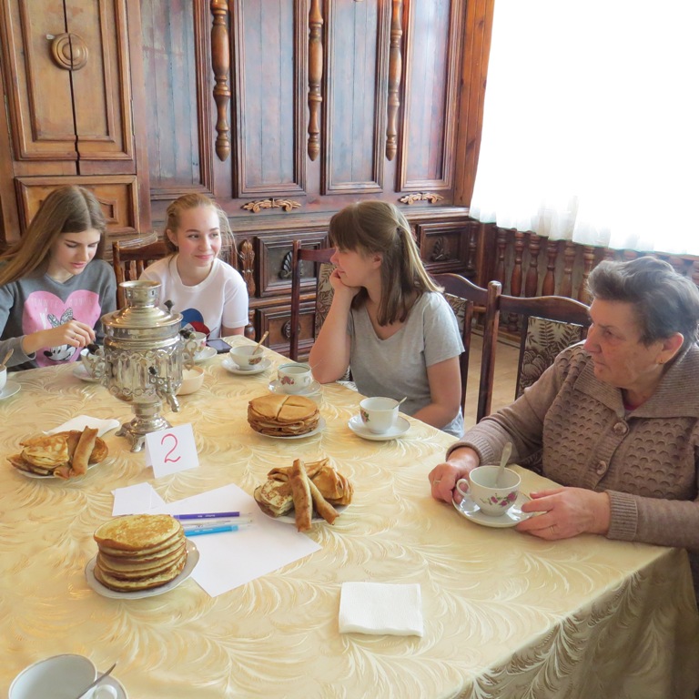 Встреча двух поколений прошла в душевной, дружеской атмосфере за ароматным чаем с блинами.