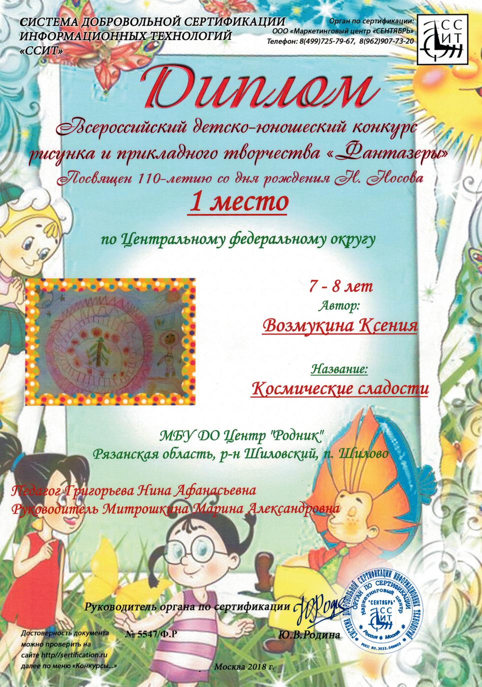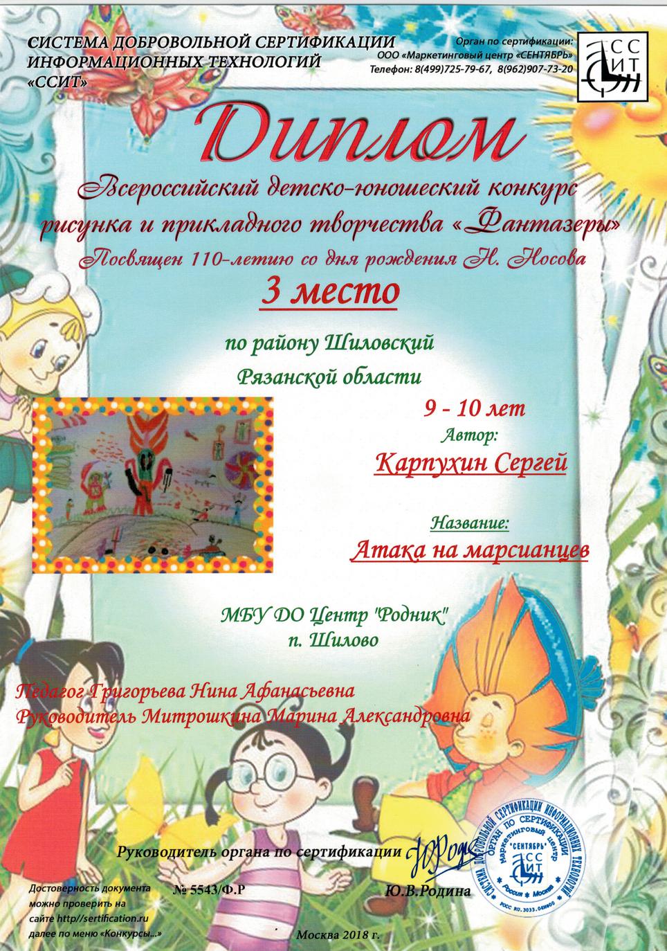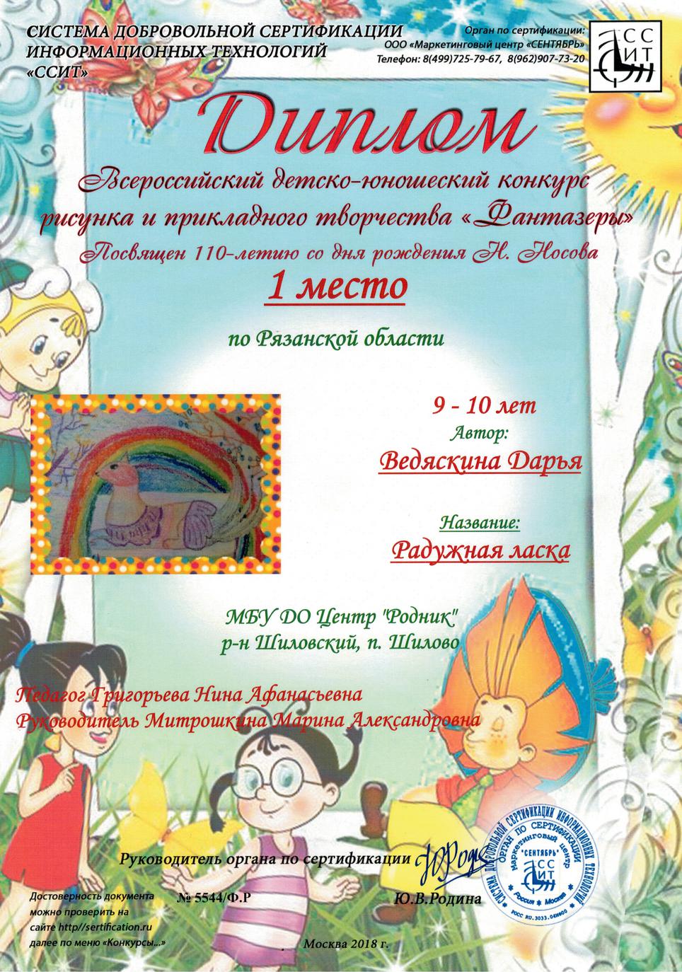 Всероссийский детско-юношеский конкурс рисунка и прикладного творчества (ССИТ) «Фантазеры», посвященный 110-летию со дня рождения Н.Носова