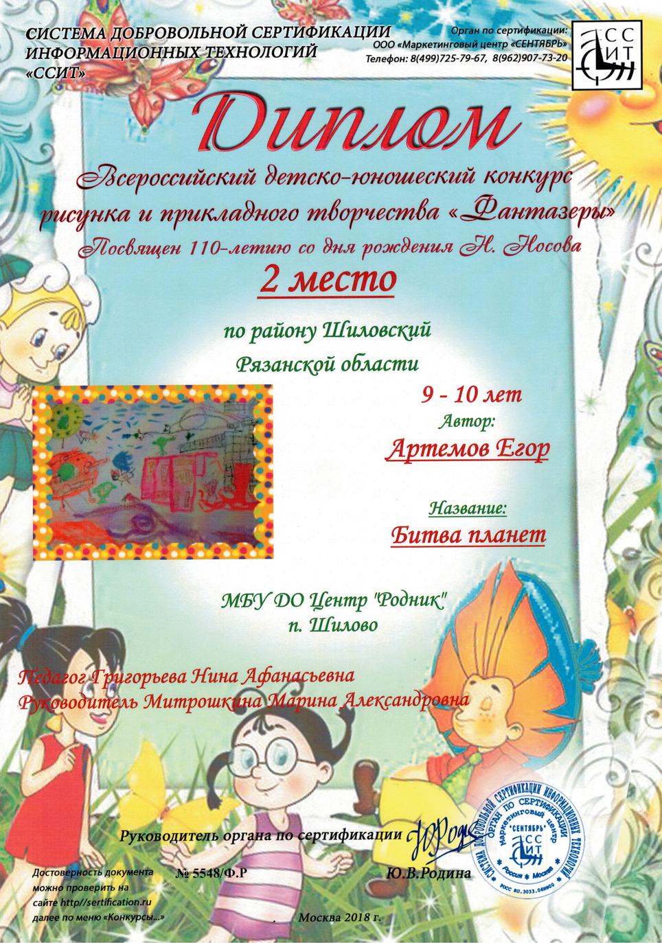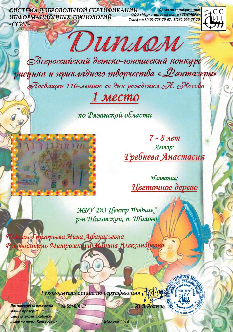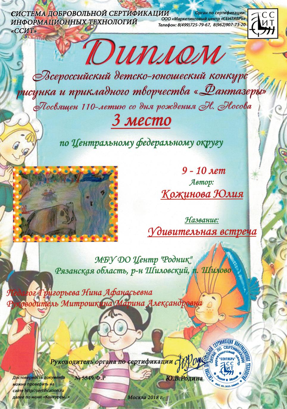 Всероссийский детско-юношеский конкурс рисунка и прикладного творчества (ССИТ) «Фантазеры», посвященный 110-летию со дня рождения Н.Носова