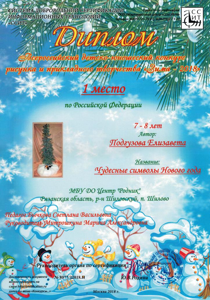 1-е место (7-8 лет) Подгузова Елизавета,