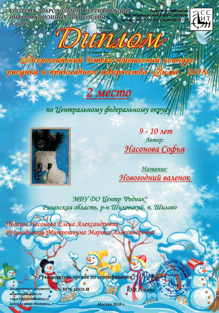 2-е место (9-10 лет) Насонова Софья,