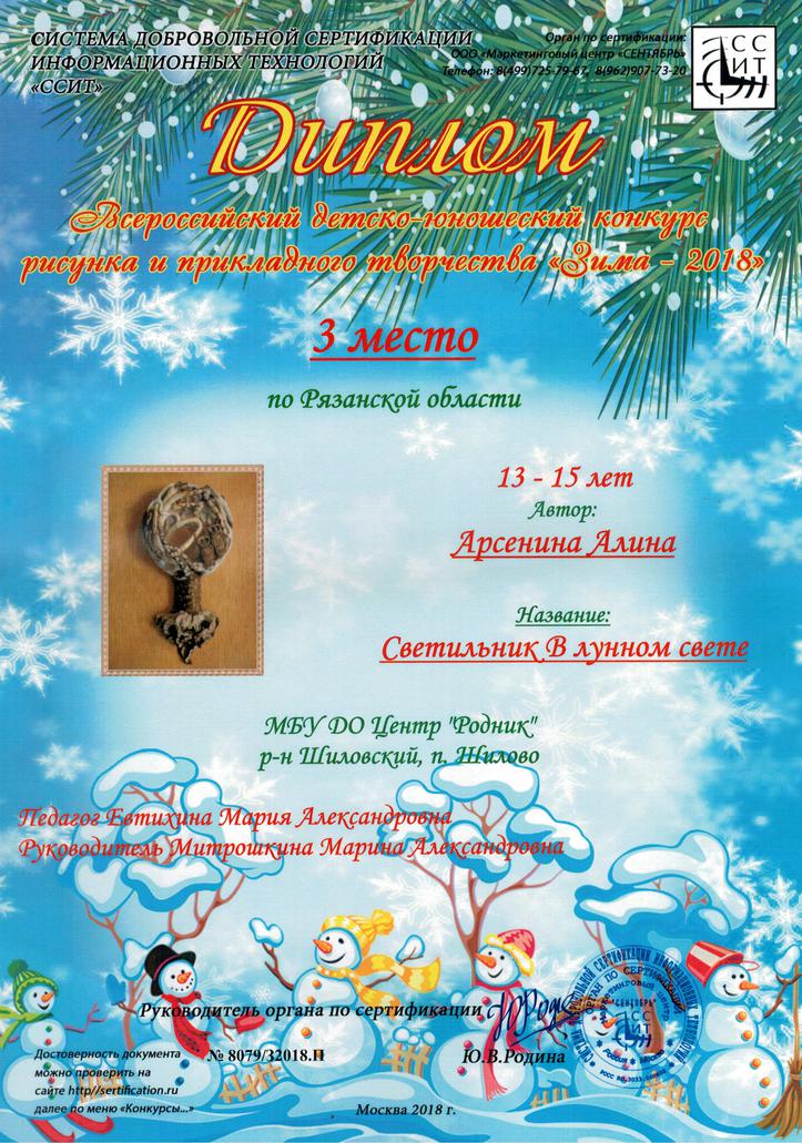 3-е место (13-15 лет) Арсенина Алина,