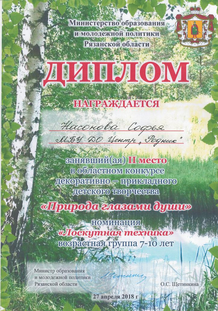 2-е место (7-10 лет) Насонова Софья,