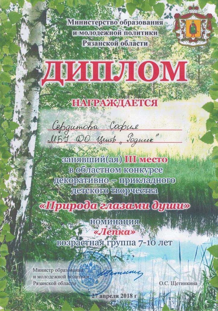3-е место (7-10 лет) Сердитова София,