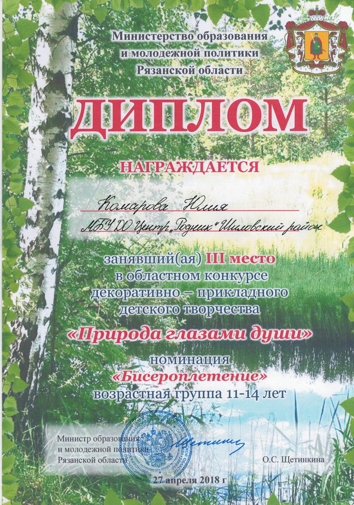 3 -е место (11-14 лет) Комарова Юлия,