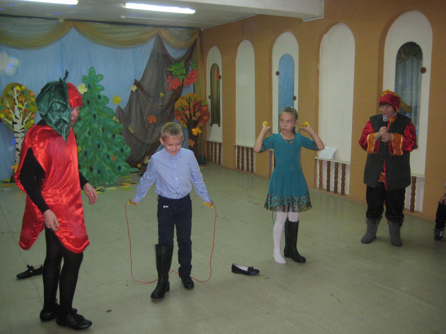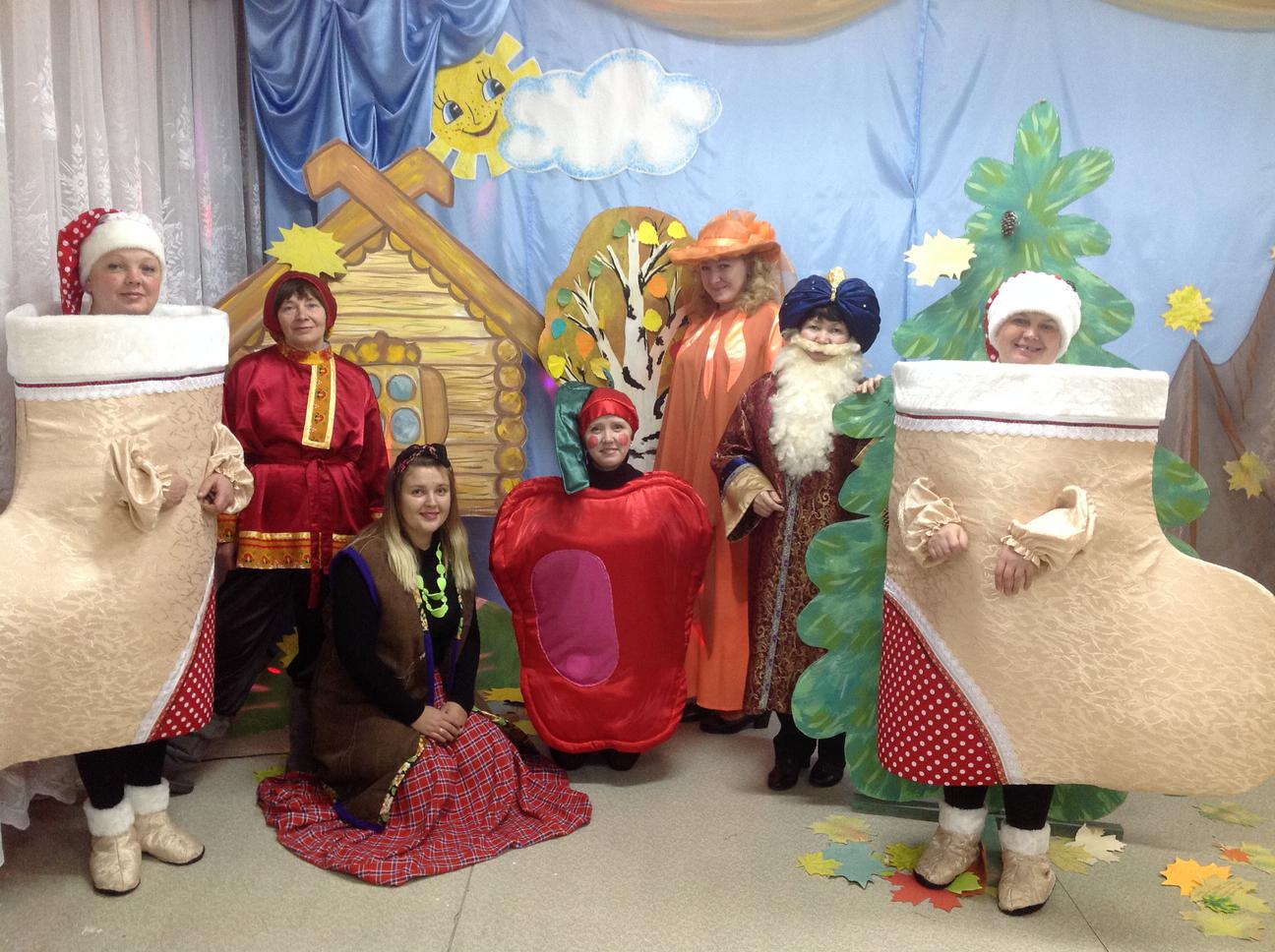 Актерской труппе педагогов Центра удалось сделать постановку яркой и интересной. Сказочные герои, а это: Волшебница Осень, Волшебное Яблоко, Баба-Яга, Емеля, Сапоги скороходы, старик Хоттабыч, играли с детьми, в озорные игры, танцевали, загадывали загадки.