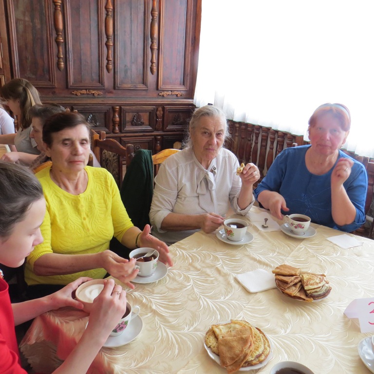 Встреча двух поколений прошла в душевной, дружеской атмосфере за ароматным чаем с блинами.