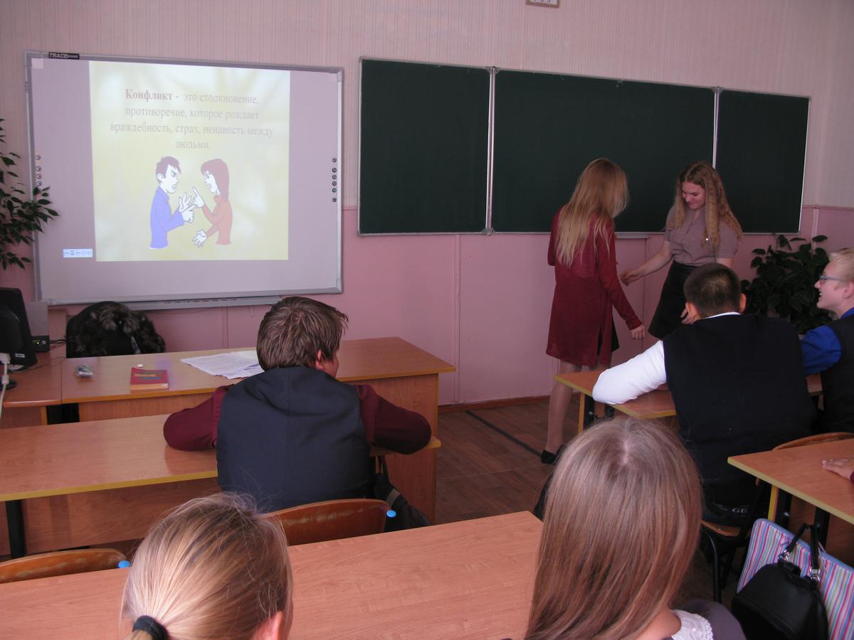 В рамках недели профилактики конфликтов в образовательной сфере в октябре 2018 года педагогом – психологом МБУ ДО Центр «Родник» Маняткиной В.А., были проведены внеклассные мероприятия «Учимся общаться без конфликтов» с учащимися 8-11 классов МБОУ «Шиловская СОШ №1», МБОУ «Шиловская СОШ №3», МБОУ Борковская сош.
