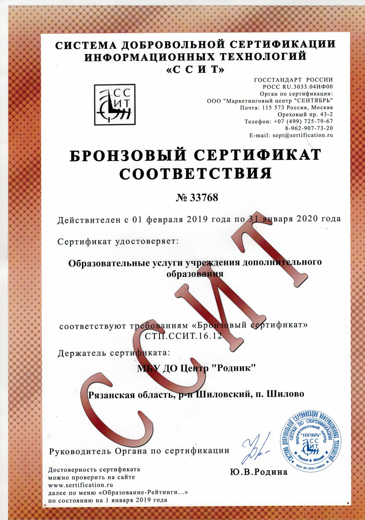 В течение 2018 года педагоги дополнительного образования МБУ ДО Центр «Родник» (директор М.А. Митрошкина) вместе со своими воспитанниками активно принимали участие в сертификационных конкурсах Системы добровольной сертификации информационных технологий (ССИТ). Конкурсы проводились в целях выявления и сертификации лучших педагогов и лучших образовательных учреждений.