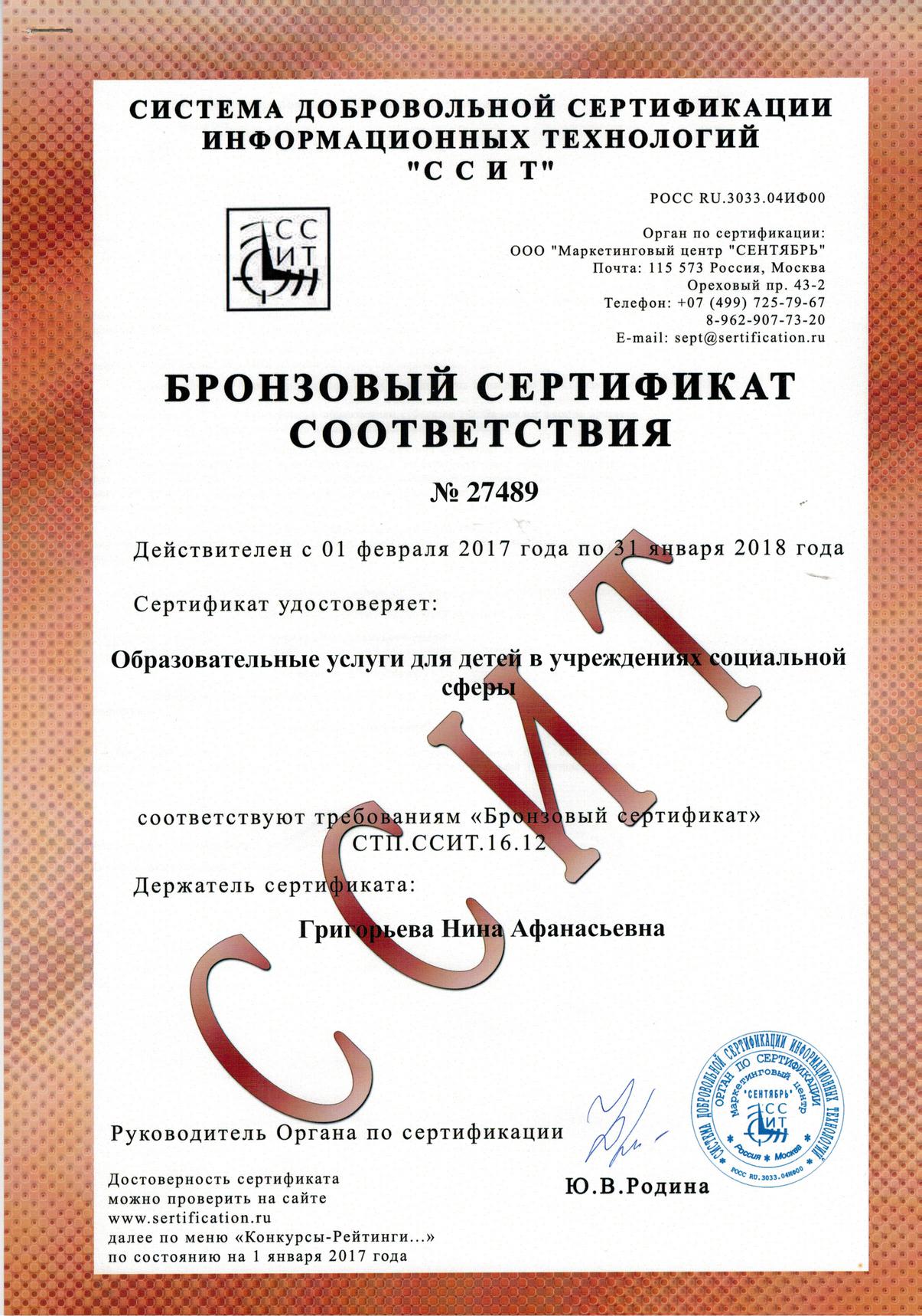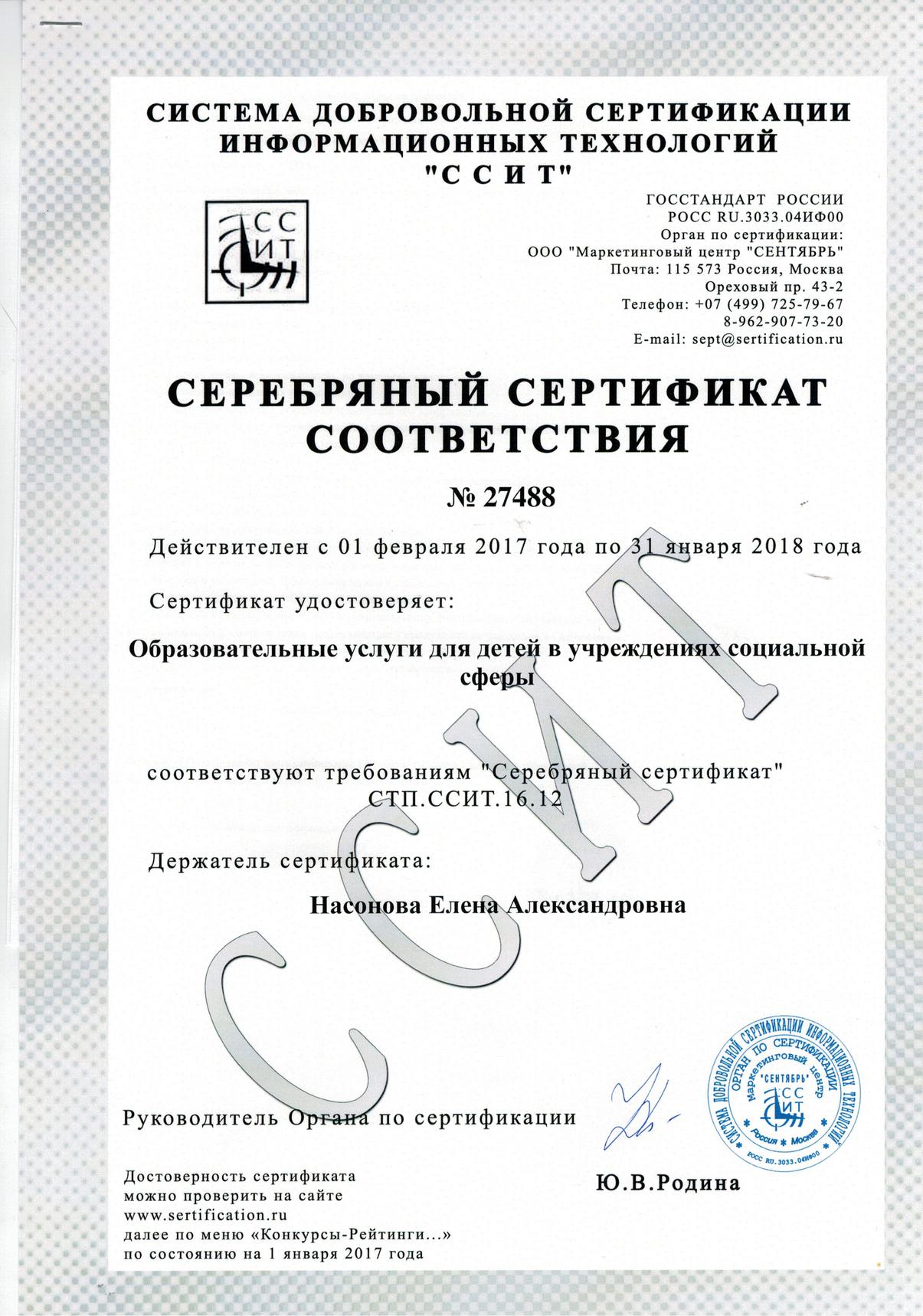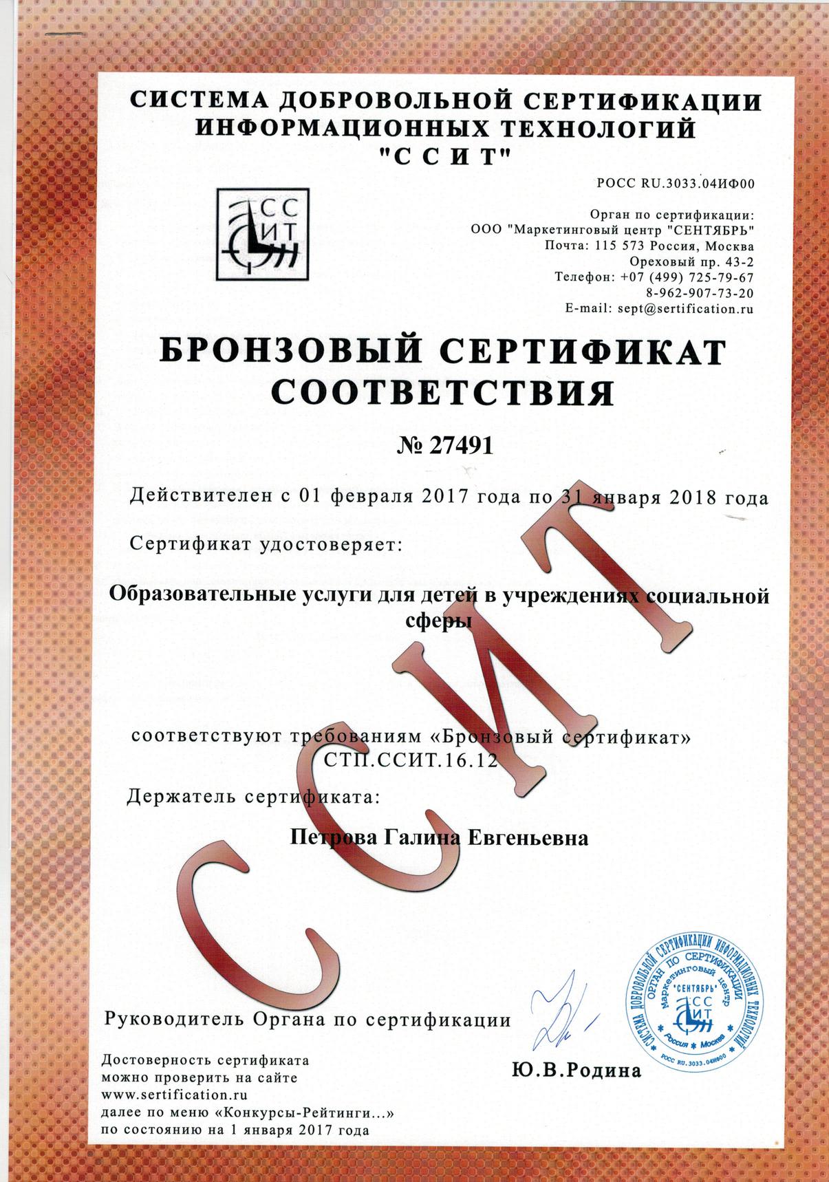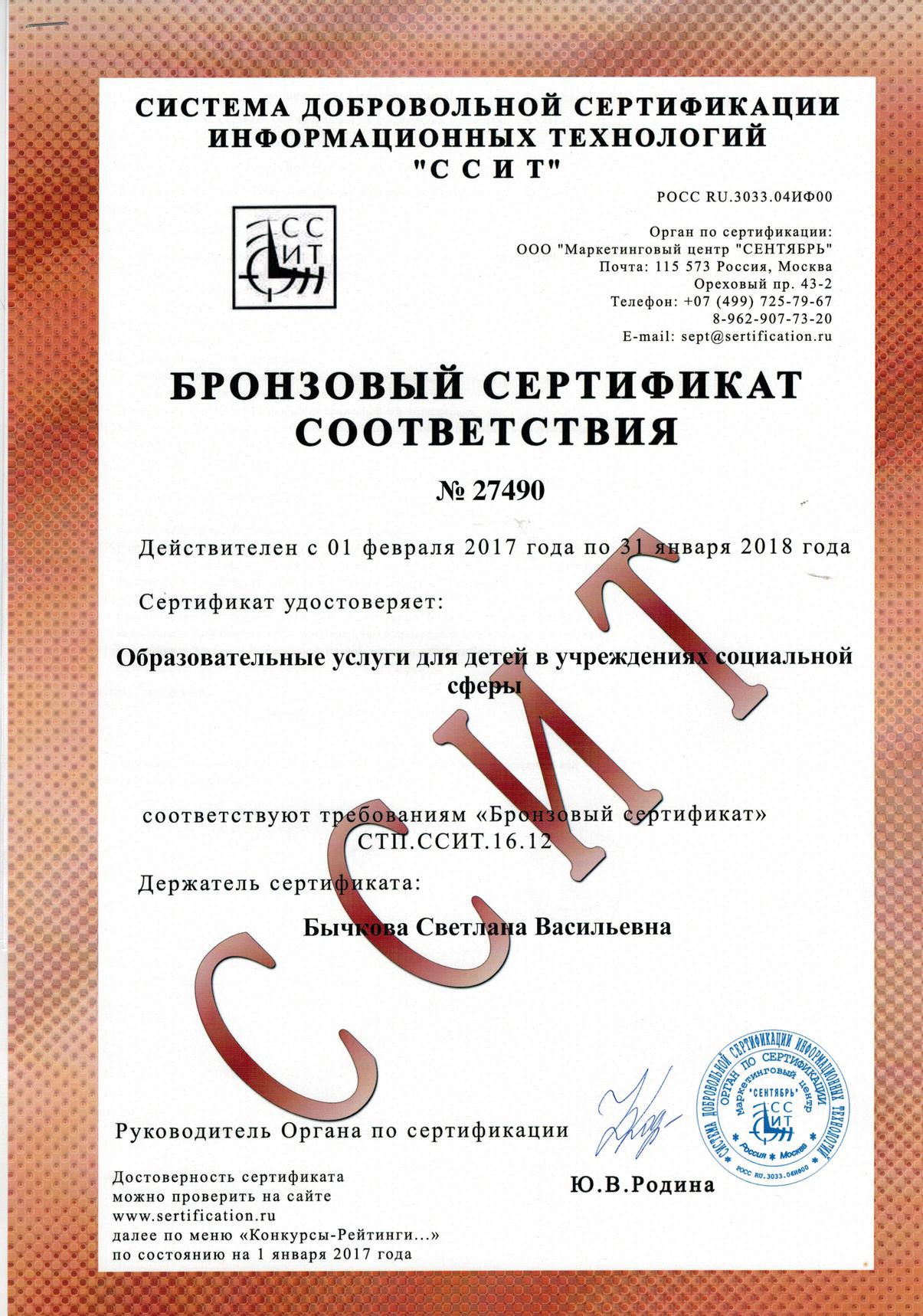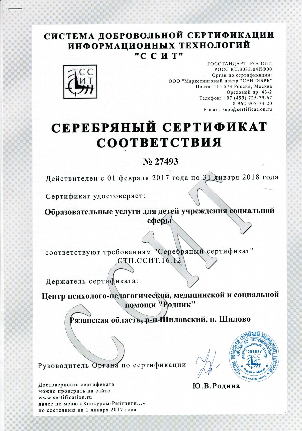 В течение 2016 года педагоги дополнительного образования МБУ ДО Центр «Родник» (директор М.А. Митрошкина) вместе со своими воспитанниками активно принимали участие в сертификационных конкурсах Системы добровольной сертификации информационных технологий (ССИТ). Конкурсы проводились в целях выявления и сертификации лучших педагогов и лучших образовательных учреждений.